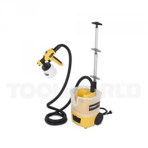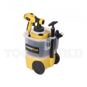 Praktisk el malersprøjte 750 watt - med vogn. Vognen og det ekstra lange kabel, gør det muligt for dig at male store overflader nemt og hurtigt. Desuden leverer sprøjten luft til sprøjten i en høj volume, men med et meget lavt tryk. Dette reducerer overspray dramatisk, så al den sprøjtede maling bliver jævnt fordelt, og ikke bare ender op i den blå luft.