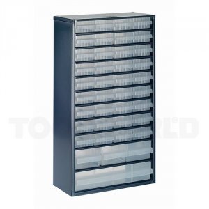 Skuffereol 1240-123 40 skuffer Raaco reol med 3 str som kan inddeles vha skillevæg