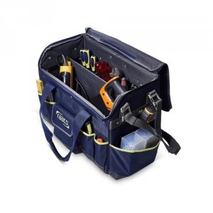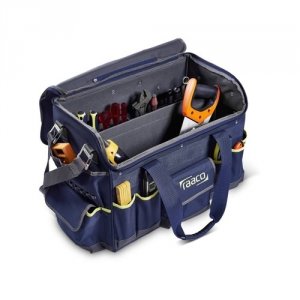 Trolley med fastmonteret værktøjstaske fra danske Raaco. Selve værktøjstasken er fremstillet i slidstærkt polyester med masser af ind- og udvendige lommer/værktøjsholdere til dit værktøj.