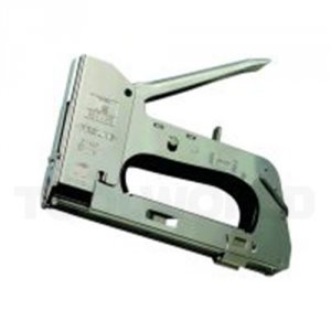 Robust kabel-hæftepistol i stål til fastgørelse af kabelinstallationer. Velegnet til montering af lavvoltkabling på op til 50V og en diameter på 6 mm - fx telefon-, TV- og højttalerkabler.