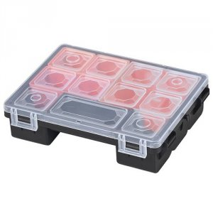 Sortimenstboks Tandem C 200, med 4 udtagelige bokse og transparent låg.