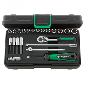 Topnøglesæt 1/4 firkant" i robuste, stabelbare ABS-kunststofkasser 19 dele