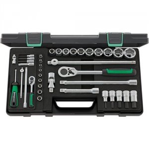 Topnøglesæt 40/52/27/11 med 38 dele fra tysk Stahlwille. Sættet er et kombisæt der indeholder toppe med 1/4" og 1/2" firkant, inkl. tilhørende skralder og forlængere. Alle toppe har sekskant profil. Et alsidigt sæt der spænder over mange typer opgaver - de små og de mellemstore.