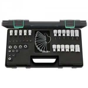 Torx-toppe i sæt model 89TX med 35 dele fra tysk Stahlwille. Sættet indeholder et sortiment af de hyppigst benyttede torx toppe i invendig og udvendig version. Du får også bits adapter med tilhørenden bit med i sættet.