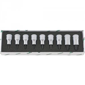 Sæt 54TX/9: Skruetrækkerhoveder til skruer med indv. TORX i kartonindpakning 9 dele