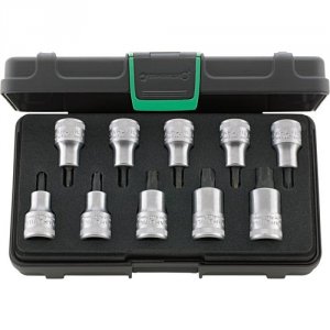 Sæt 54TX/10: Skruetrækkerhoveder til skruer med indv. TORX i robuste, stabelbare ABS-kunststofkasser 10 dele