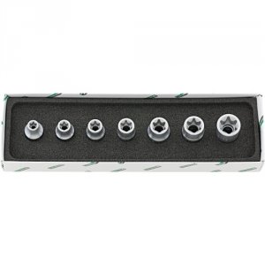 Sæt 50TX/7: topnøglehoveder til skruer med udv. TORX i kartonindpakning 7 dele