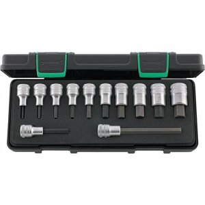 Sortiment 54/12 med INHEX toppe i robuste, stabelbare ABS-kunststofkasser 12 dele