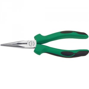 Fladrundtænger Form A med skær (radio- og telefontænger) med fladrunde, lange kæber, Brennerhul, fortinnede grebsflader, induktiv hærdedepræcisionsskær på ca. 60 HRC