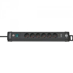 Premium-Line stikdåse med 2 x USB-oplader 6 udtag sort