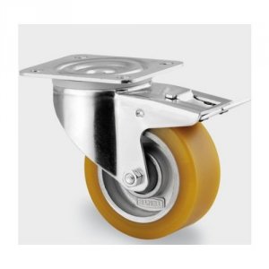 Drejeligt transporthjul med bremse, polyuretan