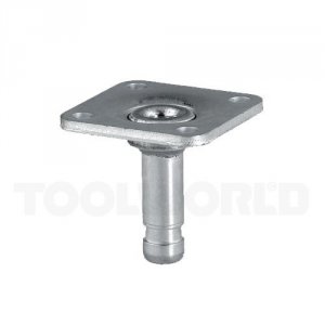 Stiftbefæstigelse med plade til hjul. Passer til hjul med centerhul Ø10mm. Plademål: 42x42. Byggehøjde: 12mm. Hulafstand: 32x32mm. Maks belastning: 60kg.