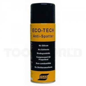 ESAB svejsespray Silikonefri svejsespray, der beskytter dyser og gaskopper mod svejsesprøjt. Derved opnås længere levetid på sliddelene. Kan anvendes til både elektro- og beskyttelsesgassvejsning. Efterbehandling som f.eks. maling og galvanisering kan udføres uden problemer. Type Eco-Tech. Indhold 300 ml.