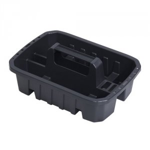 Værktøjskasse i plast, med massivt håndtag, Ergonomisk. Åbne rum, og med huller til værktøjsopbevaring.