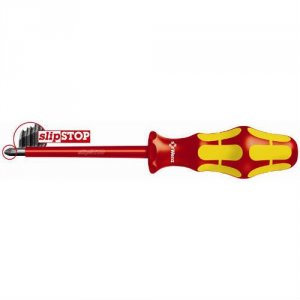 Wera® Kraftform Plus 162i skruetrækkerne med slipSTOP overfører mere kraft samtidig med at serien beskytter hånd og arm mod overbelastnings skader. Wera® har sikkerhed som top prioritet i 100 VDE serien, derfor overgår kvaliteten af serien standardterne for styrke og hårdhed i metal og plast. Hver eneste skruetrækker bliver testet og garanterer sikkerhed ved arbejde op til 1000 Volt.