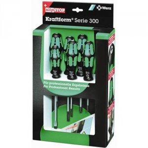 Skruetrk.sæt lige kærv +PH Wera 334/6WERA serie 300 skruetrækkersæt indh. 6 dele lige kærv + PH, med slipStop