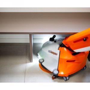 Selv svært tilgængelige arealer under borde og bænke vaskes enkelt og nemt, takket være maskinens 360° bevægelighed. Som bruger oplever du en imponerende frihed når maskine bevæger sig hen over gulvet i den ønskede retning.