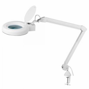 En klassisk LED-forstørrelseslampe med en robust bordklemme og glaslinsemed 3 dioptri(= 1,75 forstørrelse) ogfarvetemperatur på 6300K.Den fleksible arm på 98 cmmed 3 led giver en stor arbejdsradius.