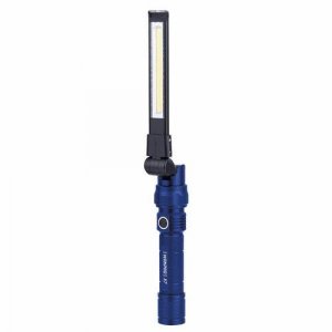 Kompakt og meget fleksibel arbejdslampe med COB LED og 360° bøjelig hals. 1W SMD LED toplys, magnetisk base og genopladeligt Li-Ion batteri.